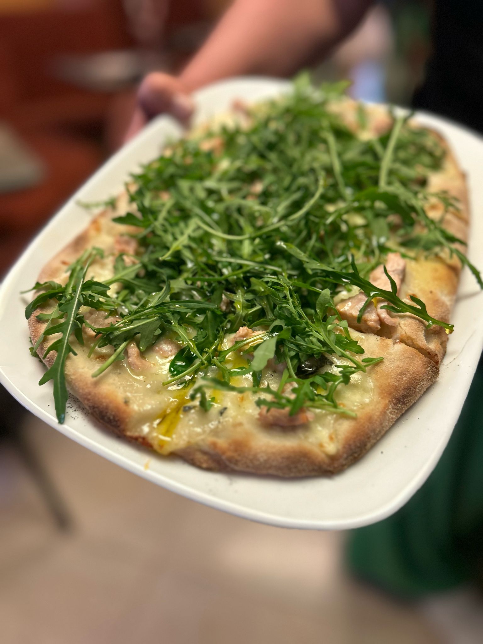 Unsere Spezialität sind „Pinsa“. Die Pinsa ist eine trendige Alternative zur klassischen Pizza. Der Teig besteht aus Weizen-, Soja-, und Reismehl. Das verleiht der Pinsa eine leichte luftige Konsistenz und einen milden Geschmack.